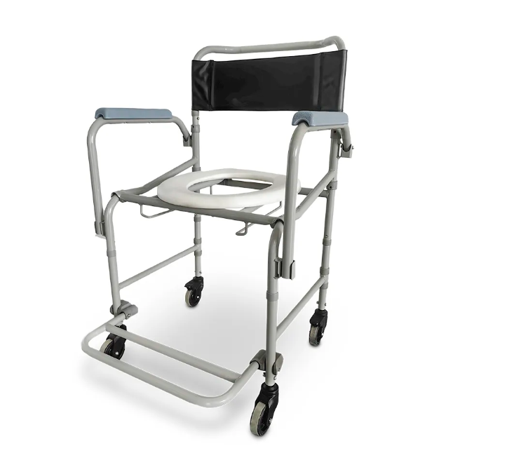 A Cadeira de Banho Higiênica D40 é a melhor escolha para quem procura uma cadeira dobrável com suporte para comadre, possibilitando seu armazenamento em qualquer local. Traz maior praticidade de movimento em locais com espaço reduzido através do seu sistema de giro 360º sobre o próprio eixo. Suporta até 120 Kg; Estrutura em aço carbono; 4 rodízios blindados com rodas giratórias de 4 polegadas, e 2 travas na dianteira; Encosto em material sintético acolchoado de alta resistência; Montagem fácil; Fácil de guardar: totalmente dobrável e desmontável;